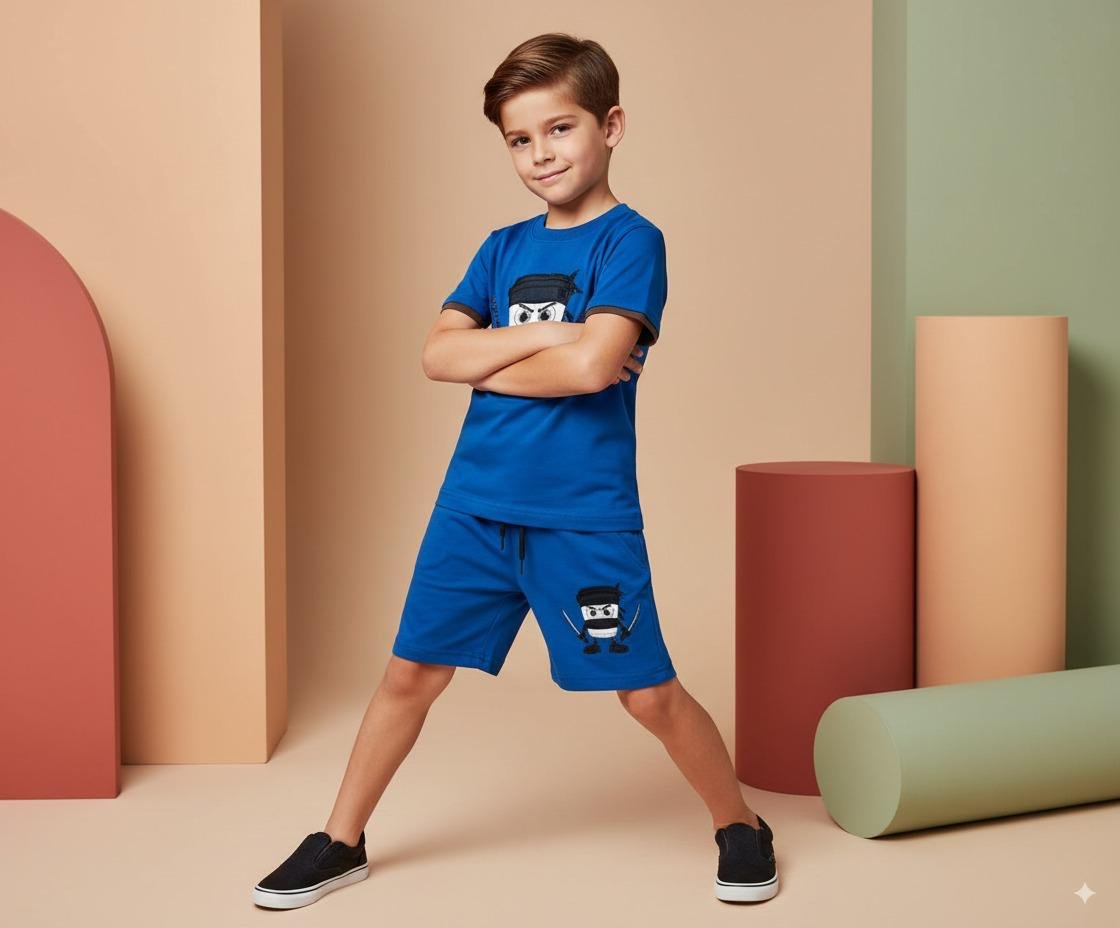El calor no detiene la diversión con este conjunto de short y remera para niño, diseñado para los pequeños exploradores que aman moverse sin límites. Con una combinación fresca de azul y celeste, este look transmite energía, frescura y mucha onda.