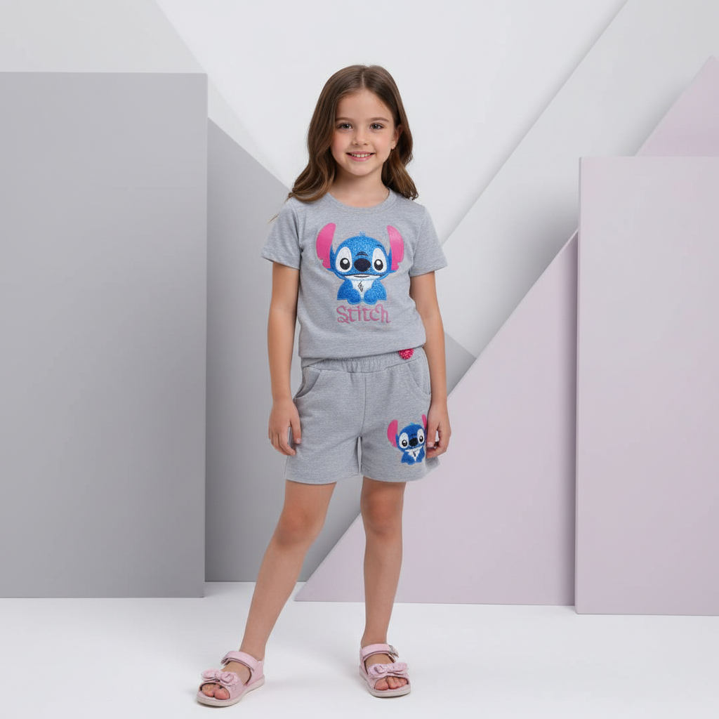 Conjunto Stitch, especial para el verano. se compone de dos piezas, Short y remera. Colores disponibles gris, violeta y rosado.