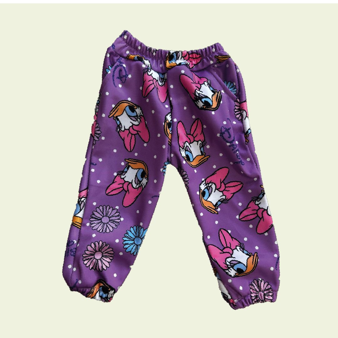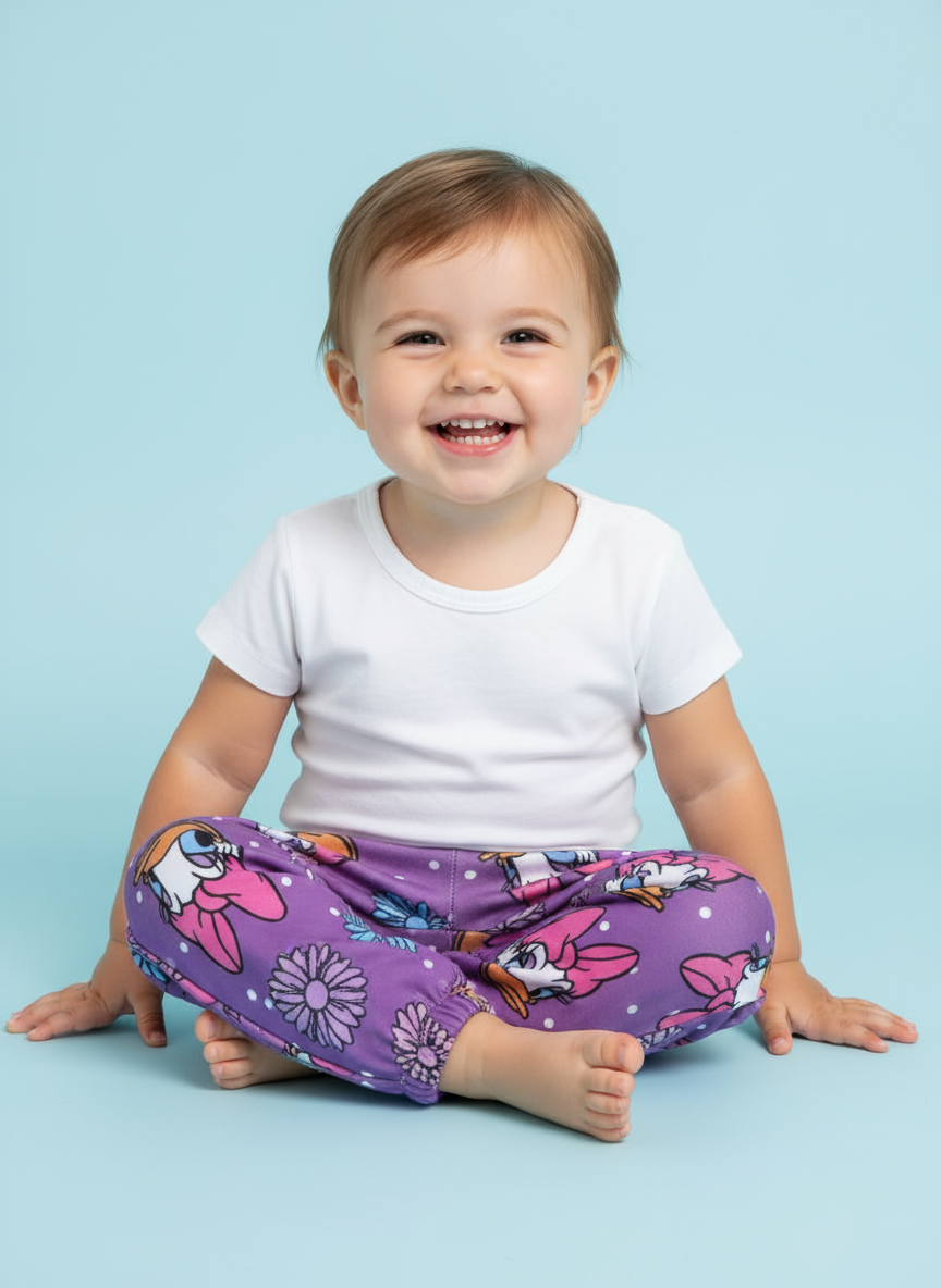 Este pantalón es pura dulzura. Con fondo violeta y un simpático estampado de Daisy Duck, es ideal para las pequeñas fanáticas del estilo y los personajes clásicos.